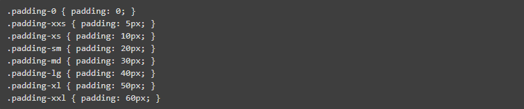 关于这点,有一个不错的例子,使用 margin 和 padding 工具。这里我们有一个 padding 工具的示例(我们也定义了 margin 相关的工具,以及只有 padding-left 和 padding-right 的工具等):