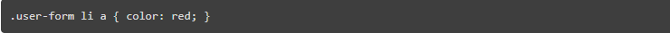 这可能是您的意图,现在要确保您的列表元素中的所有锚点标记是红色的,但是你不知道未来的元素和可能做出的设计更改。
